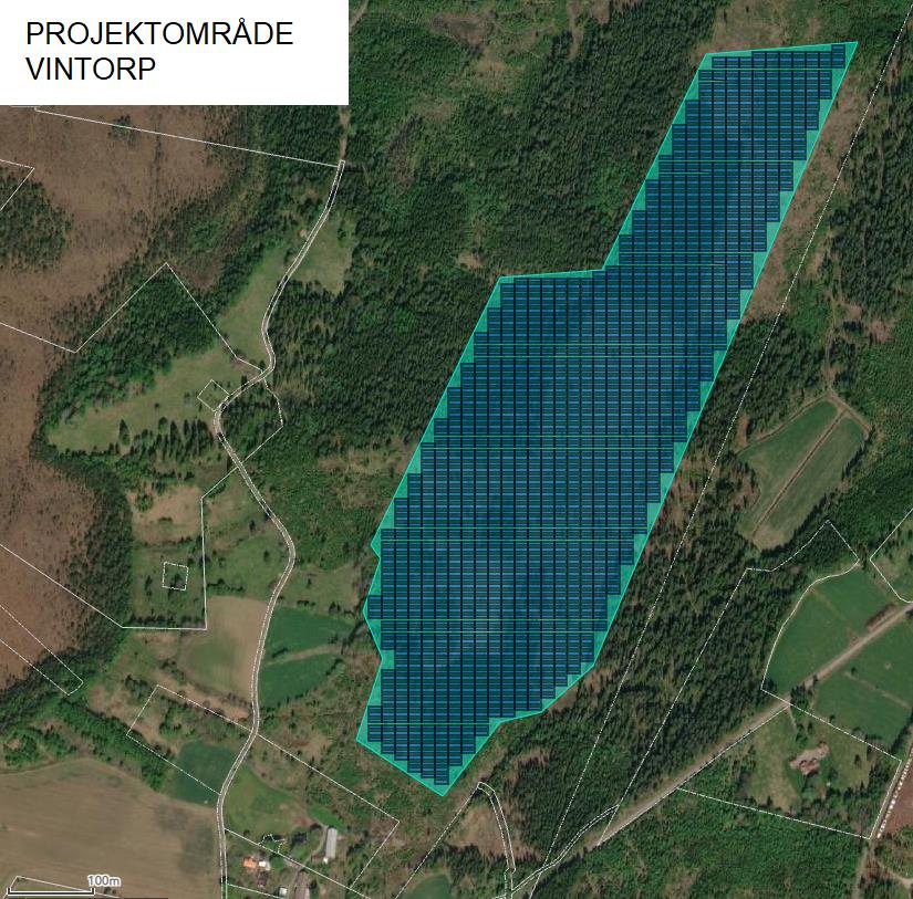 RES utreder möjligheten att anlägga en solcellspark på del av fastigheten Vintorp 2:2 i Falköpings kommun i Västra Götalands län. Den totala ytan för parken är ca 20 ha vilket möjliggör en yta för en installerad effekt på 14 MW.